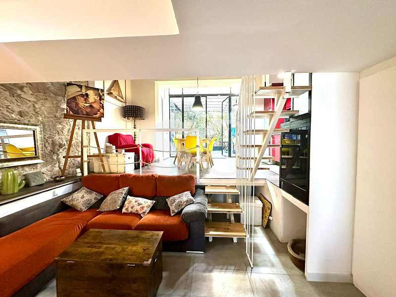 The property offers 120 m² of built area, distributed over 90 m² on the main floor and 30 m² on the mezzanine level, plus a generous 40 m² private terrace. The open-plan layout provides abundant natural light and allows for flexible use of the space.